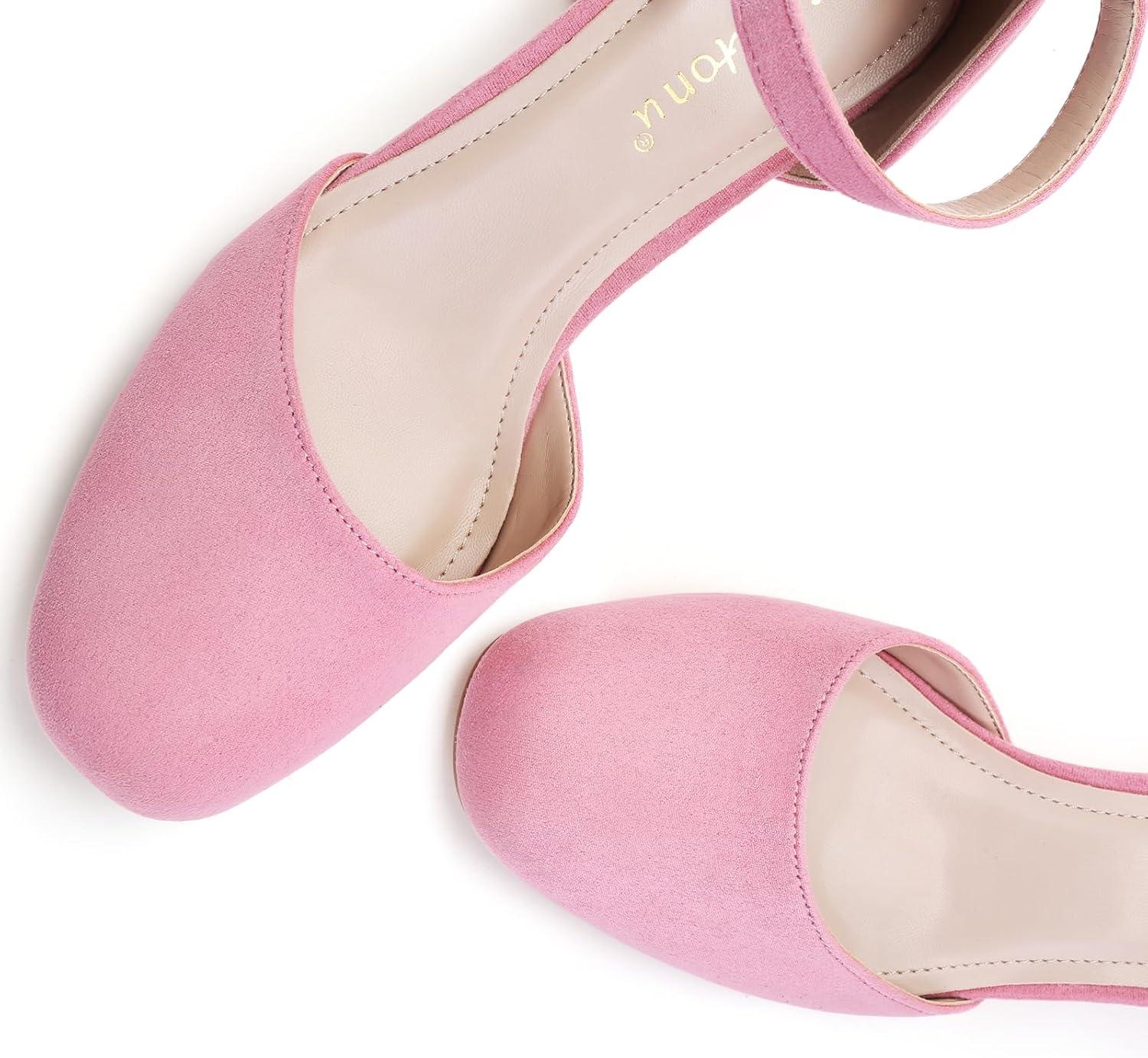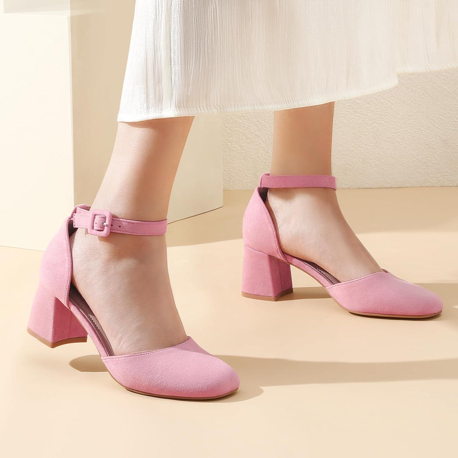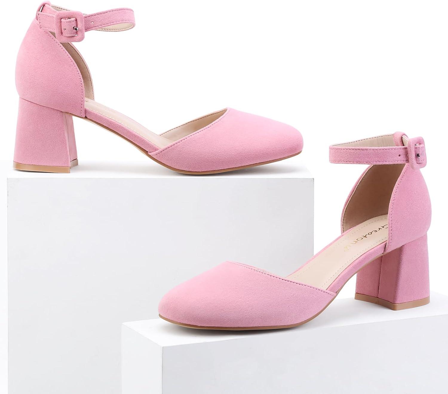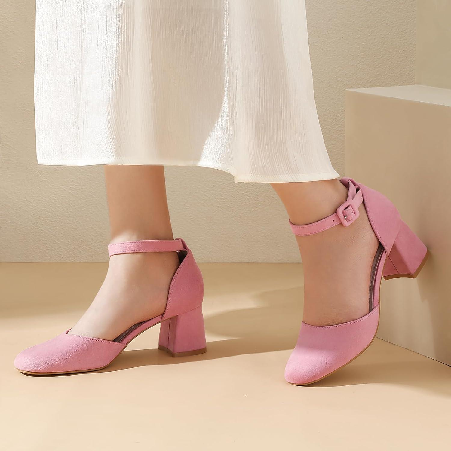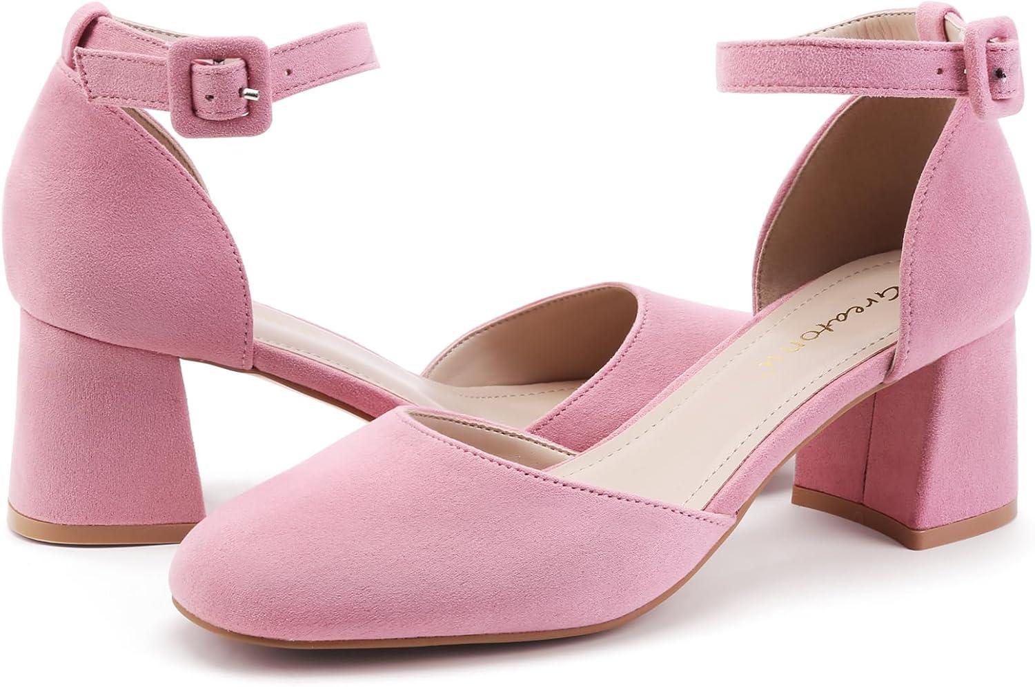 Greatonu Women’s Block Heels Square Toe Ankle Strap Court Shoes for Women Party Wedding Date Office Pumps Dress Shoes