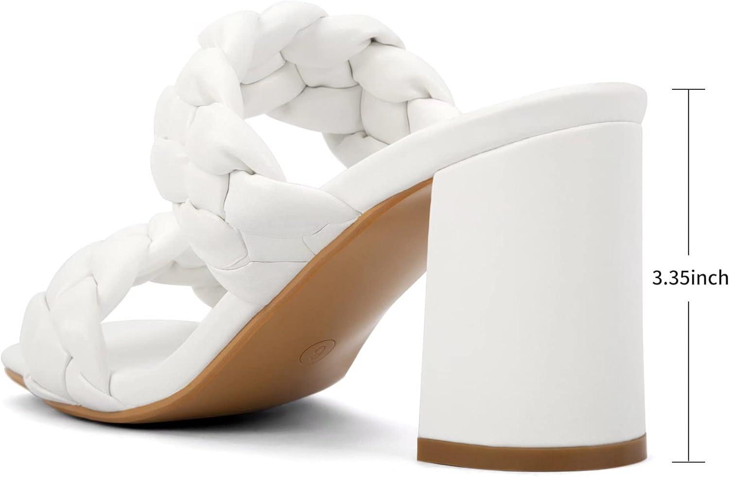 Greatonu Women’s Braided Heeled Sandals Square Open Toe Sandals for Women 2026 Summer Heels Slip On Dressy with Block Heel 3.35 Inch(White)
