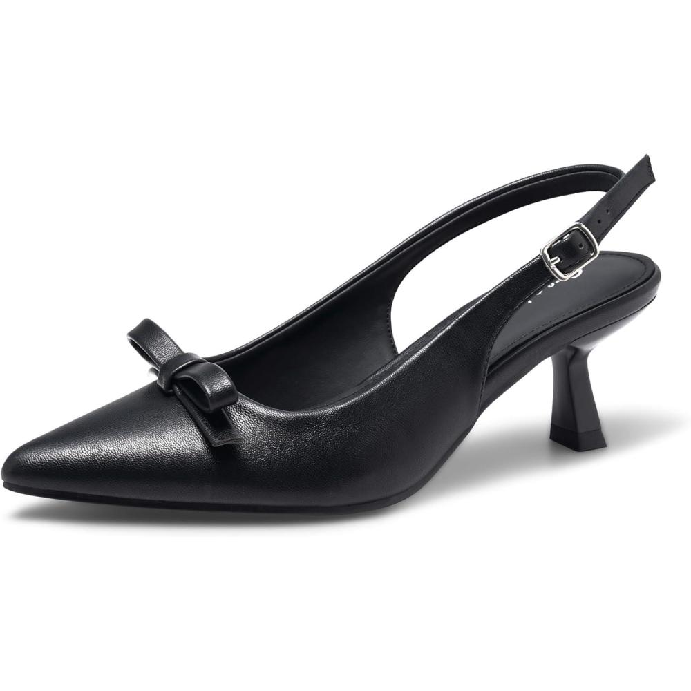 Greatonu Women’s Kitten Heels Pointed Toe Slingback Dress Pumps Shoes(Black-bow Tie)