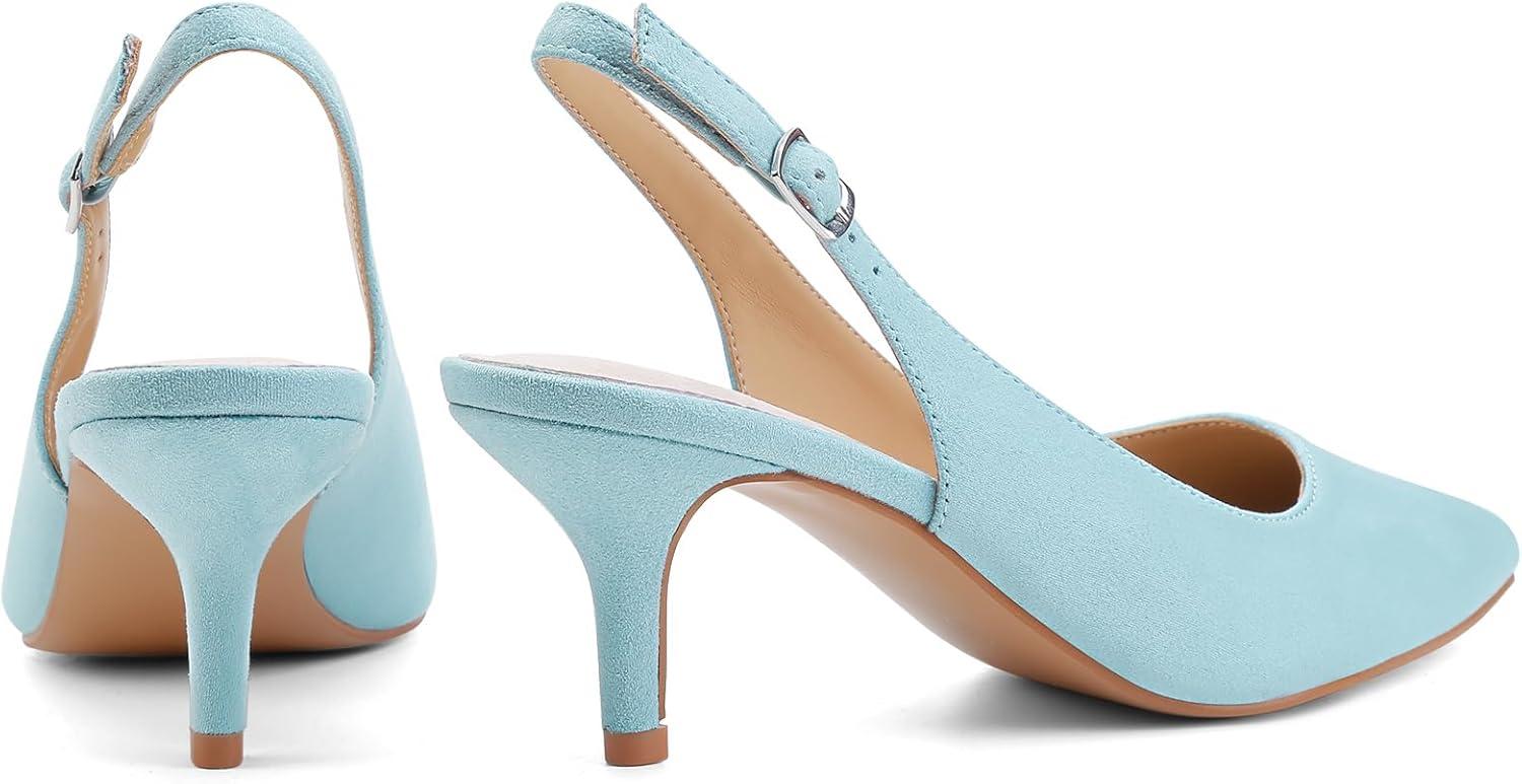 Greatonu Women’s Kitten Heels Pointed Toe Slingback Leather Insole Dress Pumps Shoes(Light Blue)