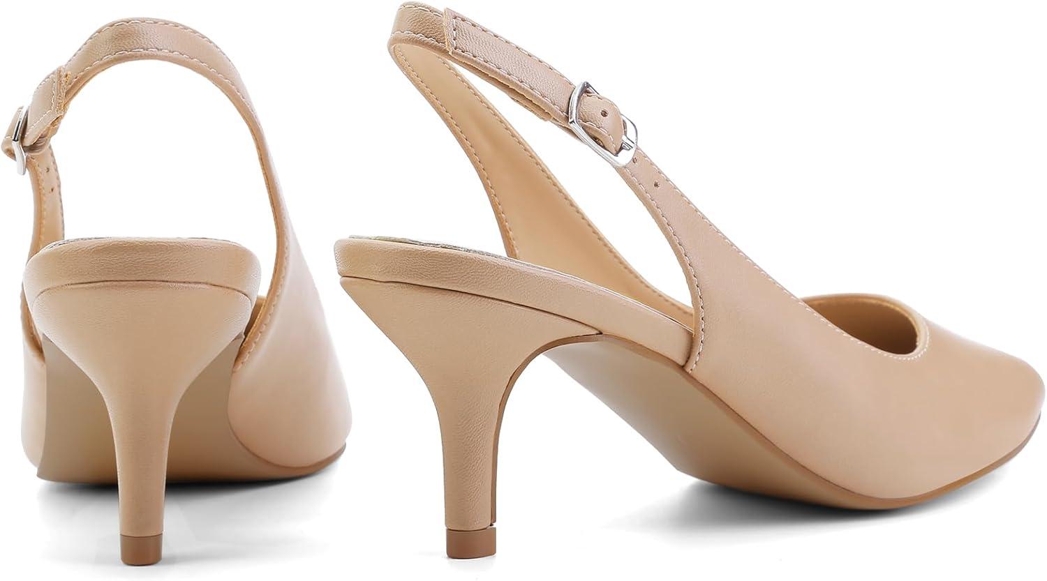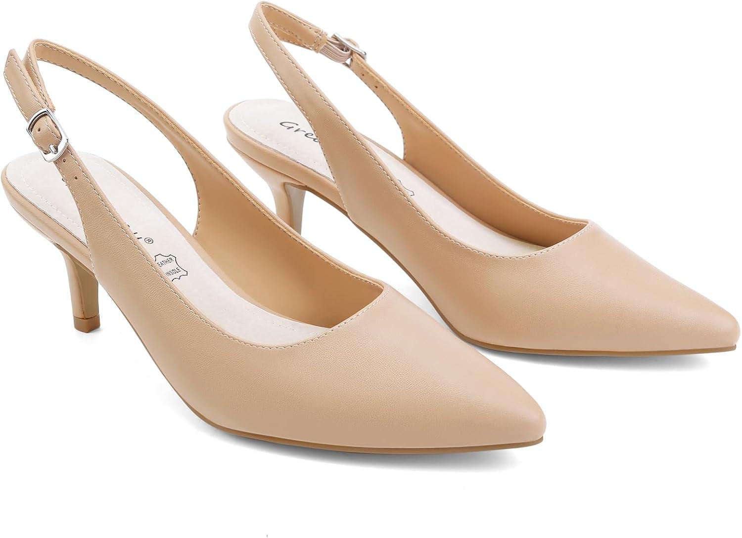 Greatonu Women’s Kitten Heels Pointed Toe Slingback Leather Insole Dress Pumps Shoes(Nude/Pu)