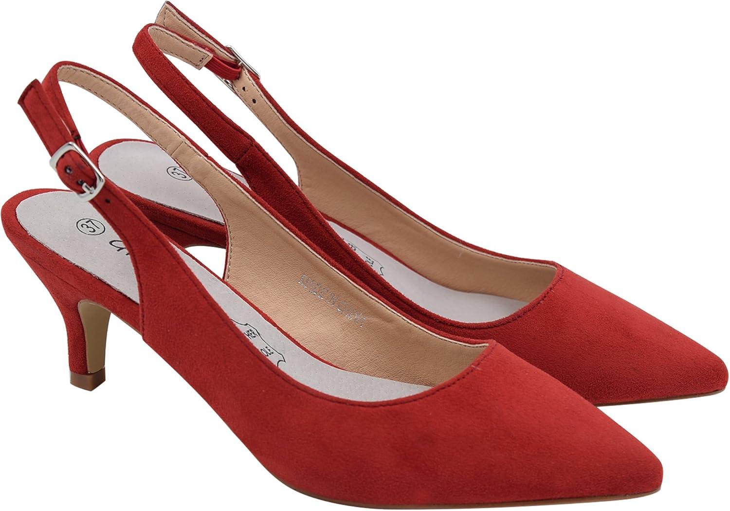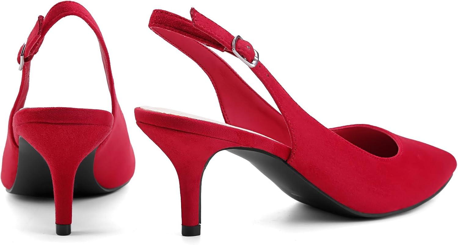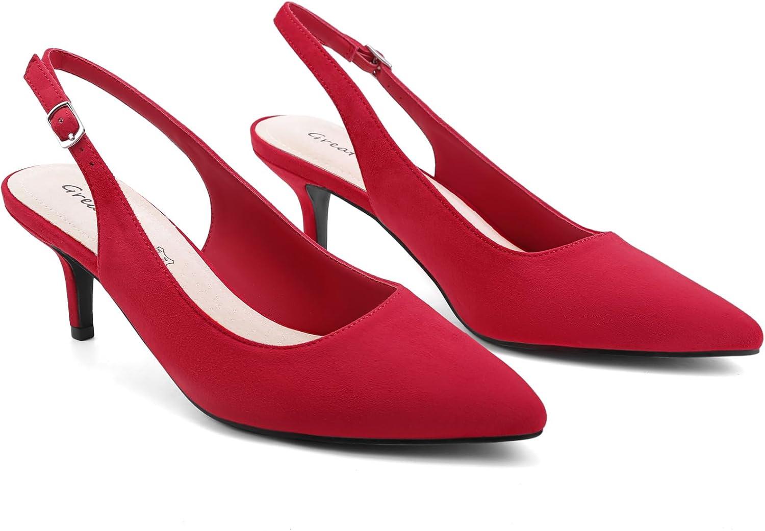 Greatonu Women’s Kitten Heels Pointed Toe Slingback Leather Insole Dress Pumps Shoes(Red)