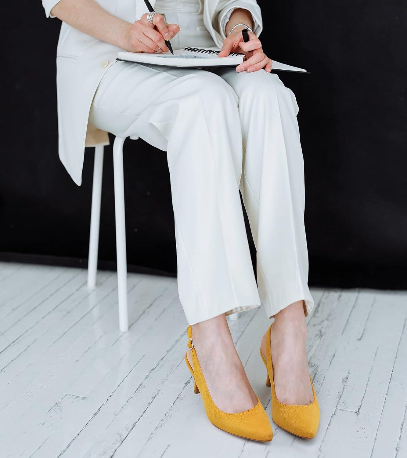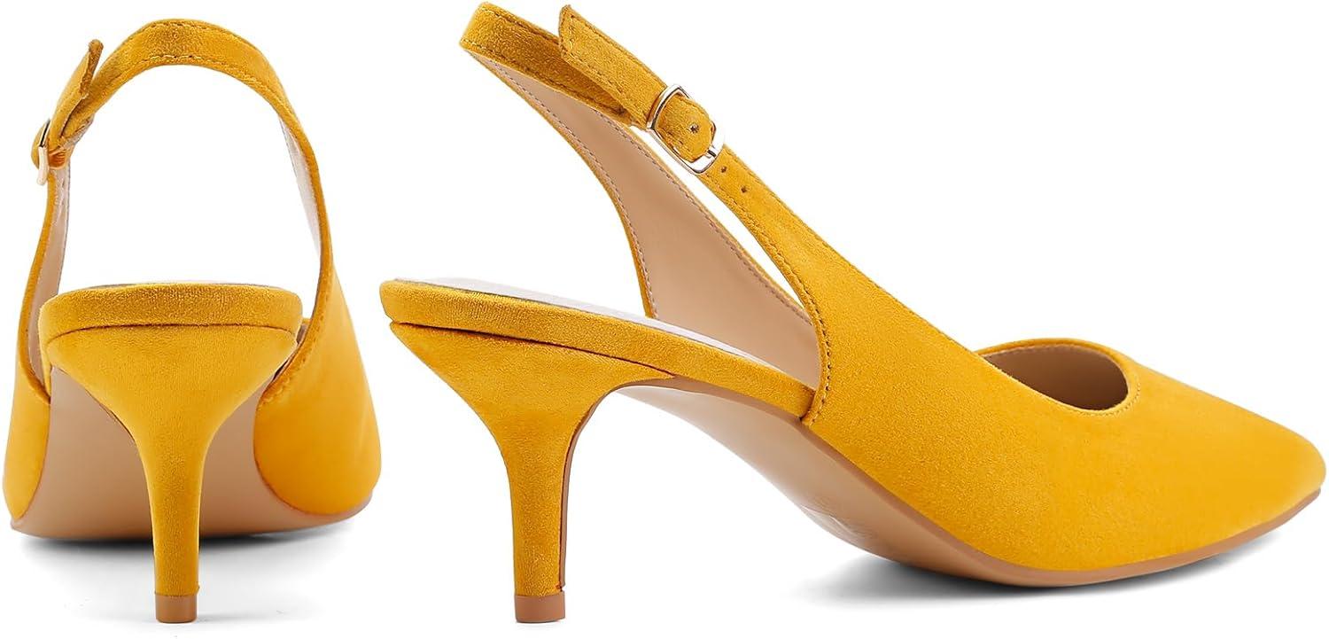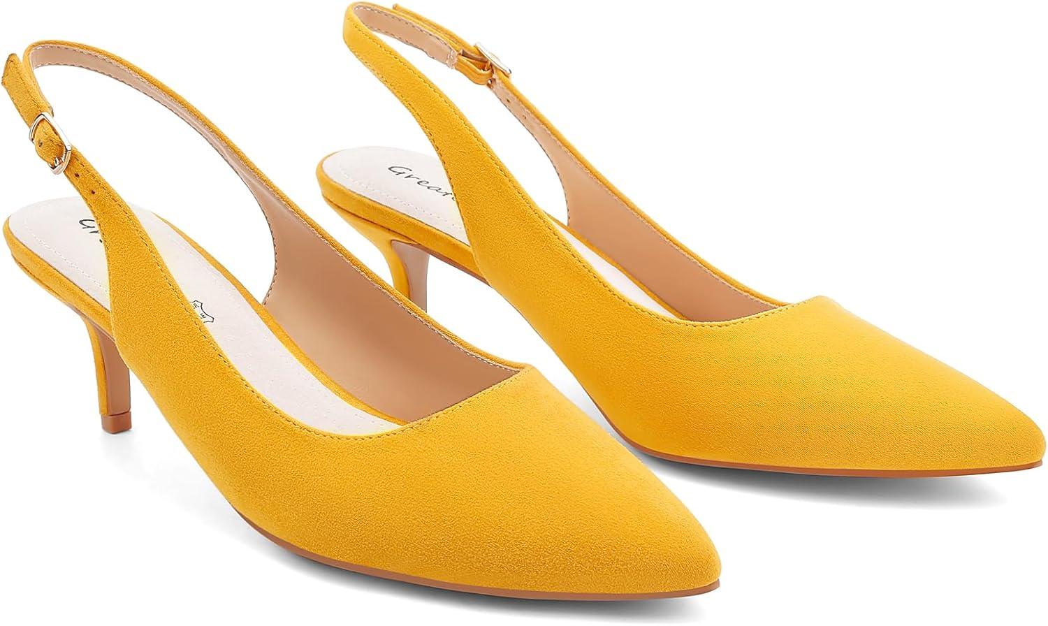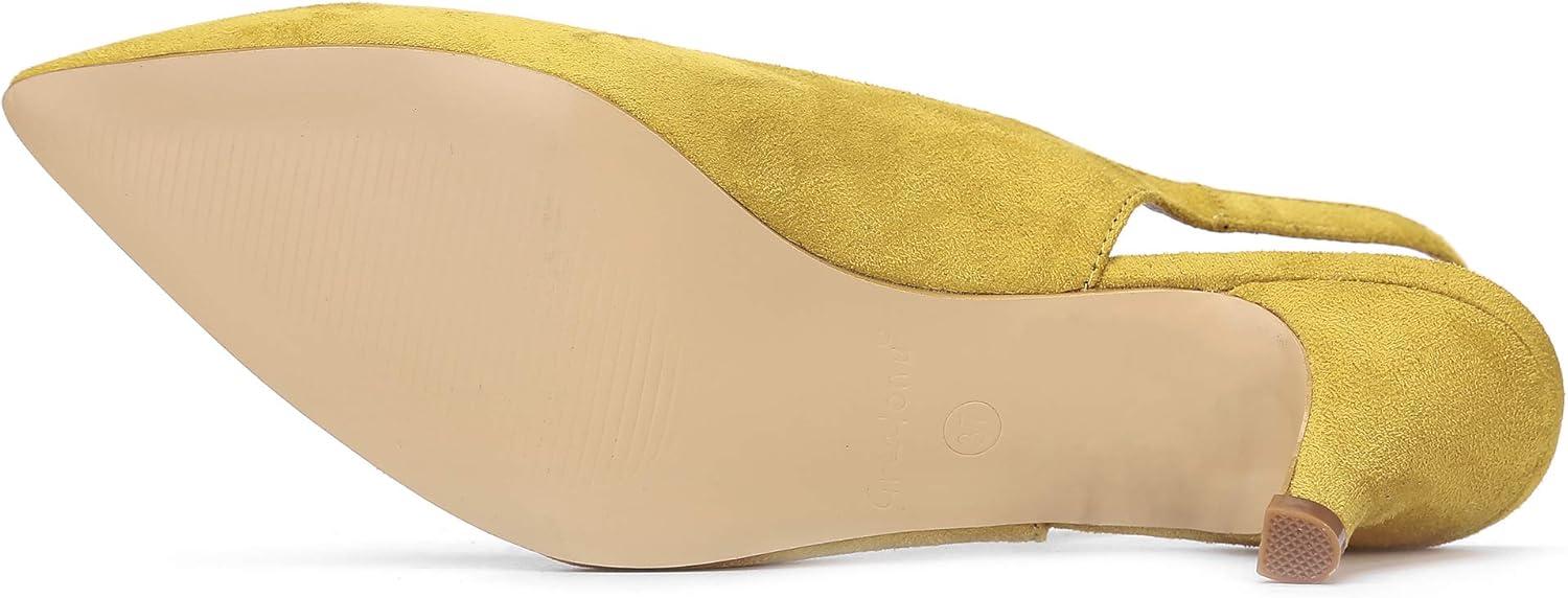 Greatonu Women’s Kitten Heels Pointed Toe Slingback Leather Insole Dress Pumps Shoes(Yellow/Suede)