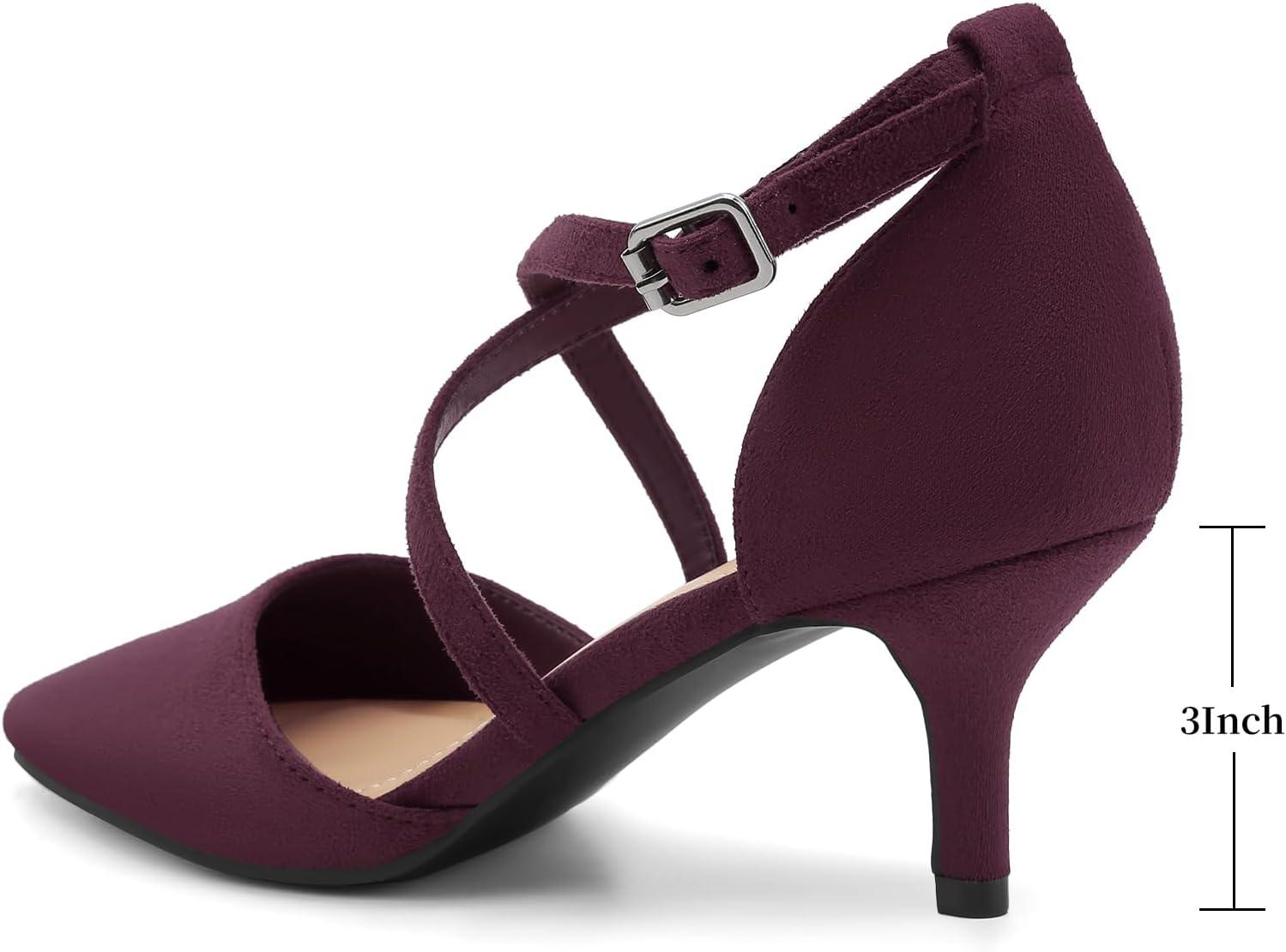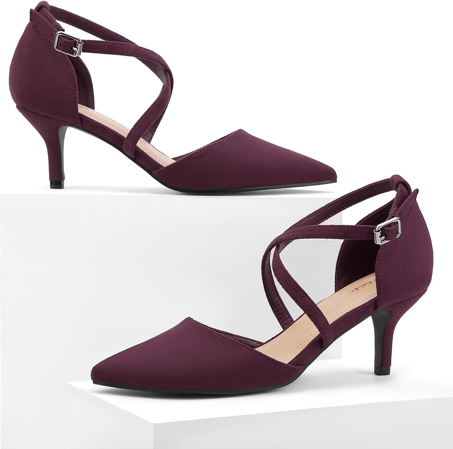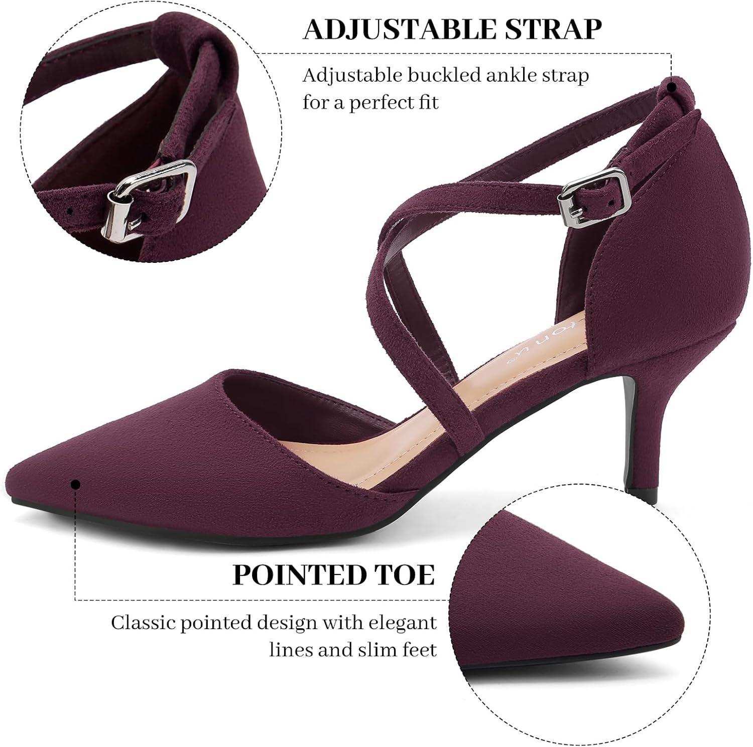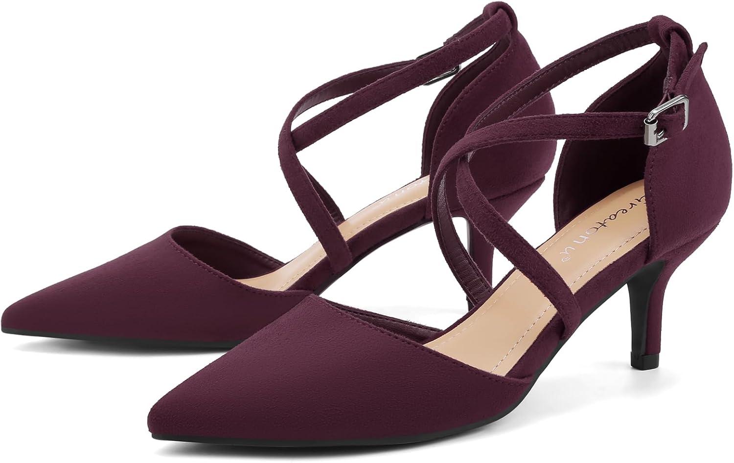 Greatonu Women’s Low Heeled Closed Pointed Toe Pumps Kitten Heel Cross Strap Wedding Bridal Party Office Dress Shoes(Burgundy)